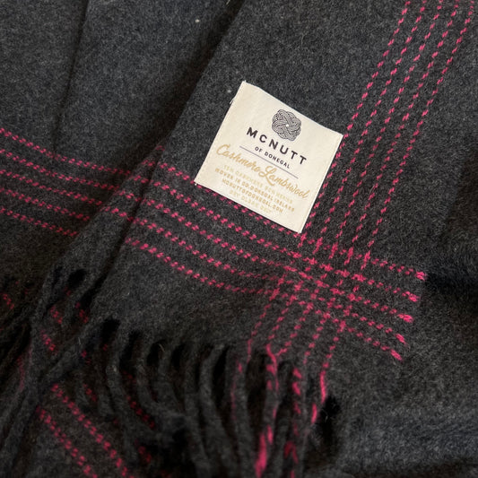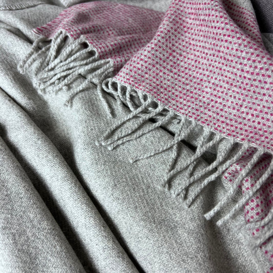 McNutt Cashmere/Merino Wool Throw "Silver & Raspberry"