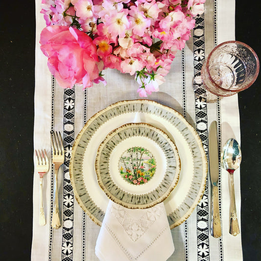 100% Linen Drawn Thread Runners - White