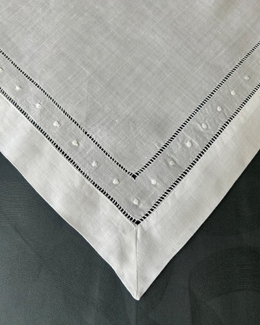 100% Linen Drawn Thread Napkins - White