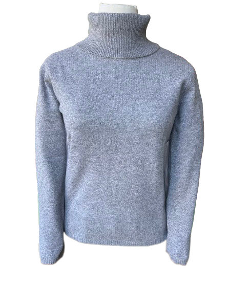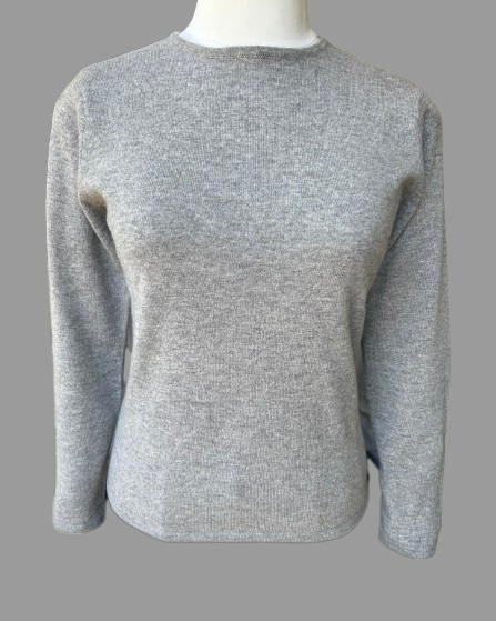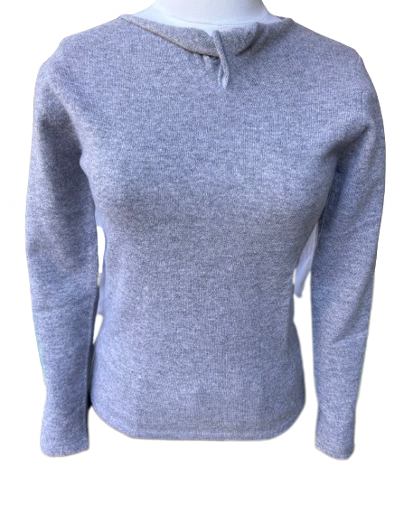 Ladies Cashmere Sweater: Twisted Neckline Silver