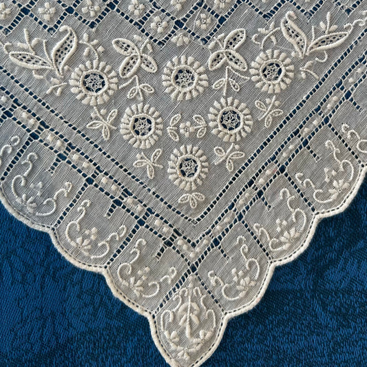 Handkerchief Ladies - "Mother Of The Bride": Full Floral Embroidery with Scalloped Edge