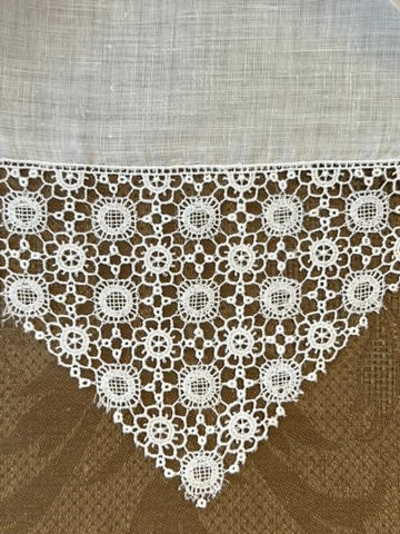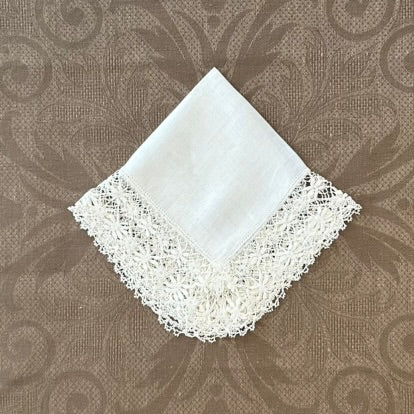 Estate/Vintage Ladies Handkerchief - Off White Linen With Handmade Lace Corners and Edge