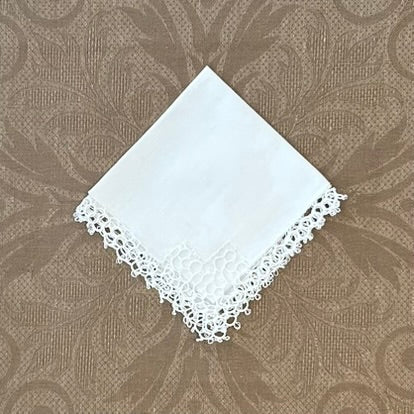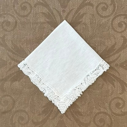 Estate/Vintage Ladies Handkerchief - White Linen With Crochet Edge and Corner