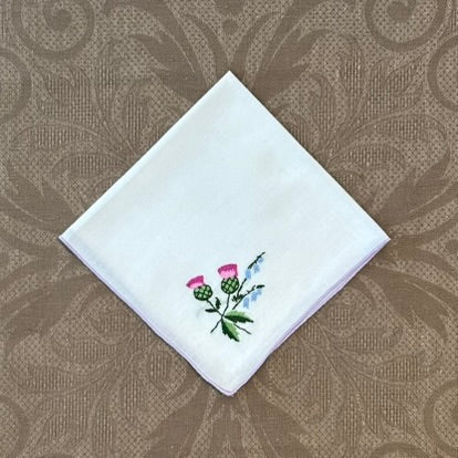Estate/Vintage Ladies Handkerchief - Soft White Cotton With Embroidered Thistle