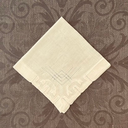 Estate/Vintage Ladies Handkerchief - Soft White Linen with Appliqué and Drawn Thread