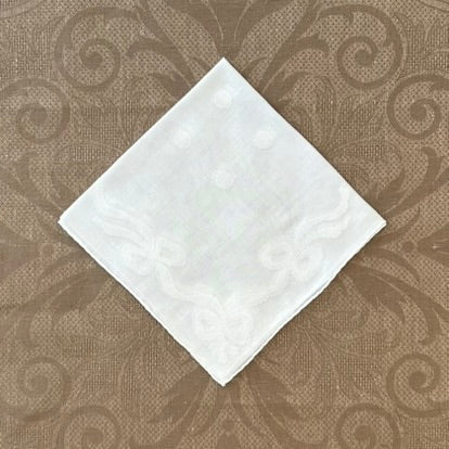 Estate/Vintage Ladies Handkerchief - Soft White Cotton With Bows & Dots Motif