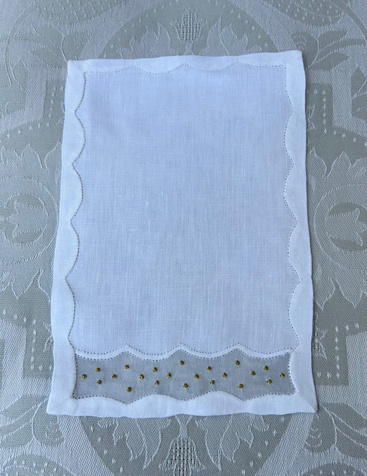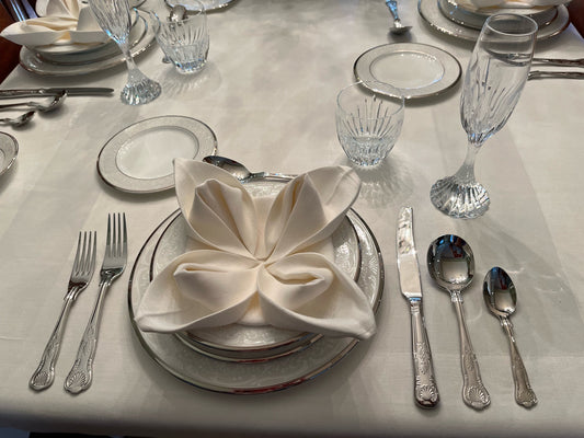 Irish Damask Linen Napkins - Chrysanthemum Design White