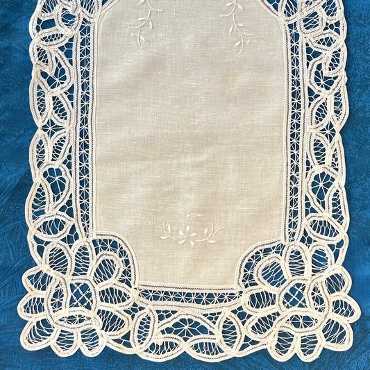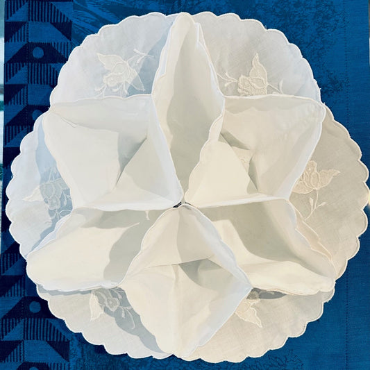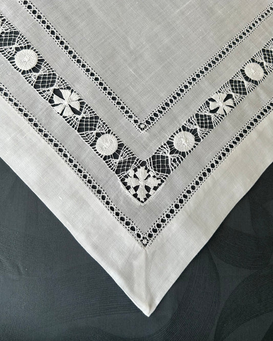 Handkerchief Ladies - White Linen with Crochet Shamrocks and Pinwheels