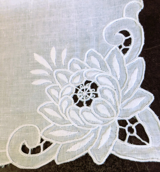 Linen/Cotton Hand Embroidered Cutwork Doily