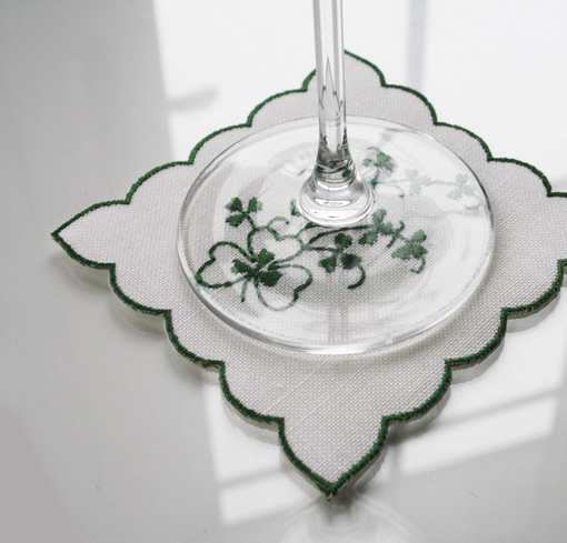 Kinsale Linen Blend Shamrock Cocktail Mats / Coasters
