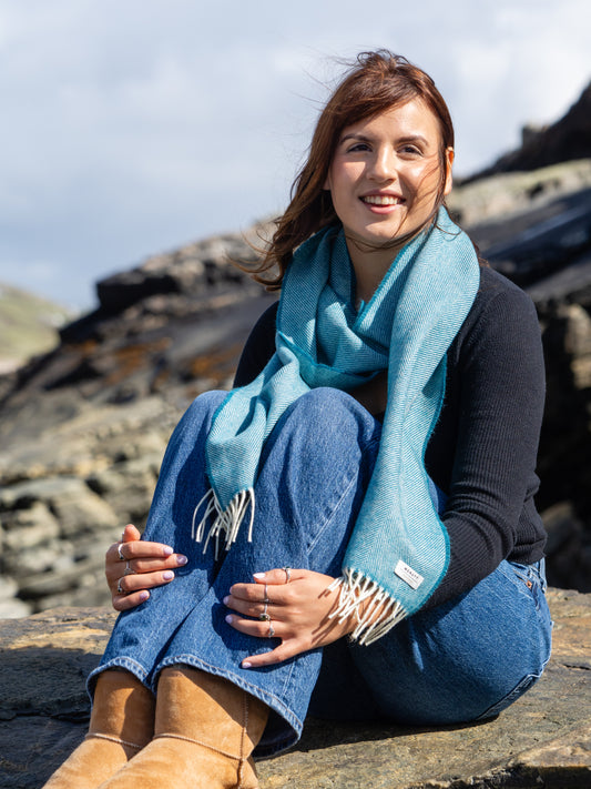 McNutt Lambswool Scarf - Kingfisher Herringbone