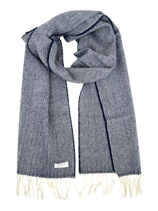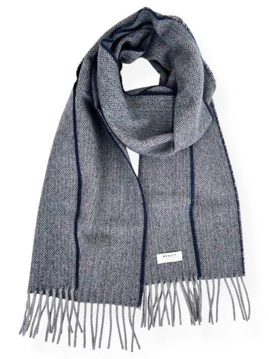 McNutt Lambswool Scarf - Navy & Grey Herringbone