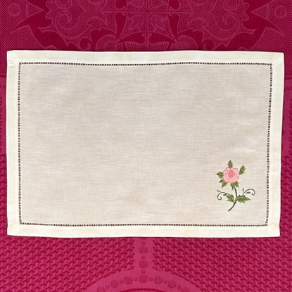 Clearance! Linen/Cotton Embroidered Placemat - "Rose"