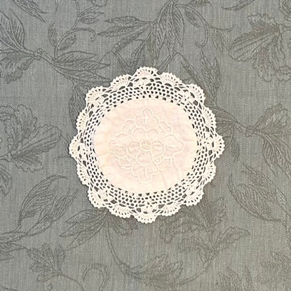 Lovely 100% cotton white sachet with pocket access in back to slip in your favourite dried herbs or flowers. Hand embroidered floral motif with crochet edge.