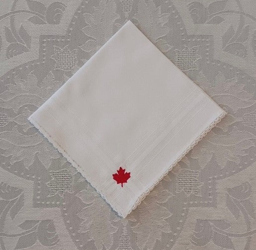 Handkerchief Ladies - Canadian Maple Leaf Embroidery With Picot Edge