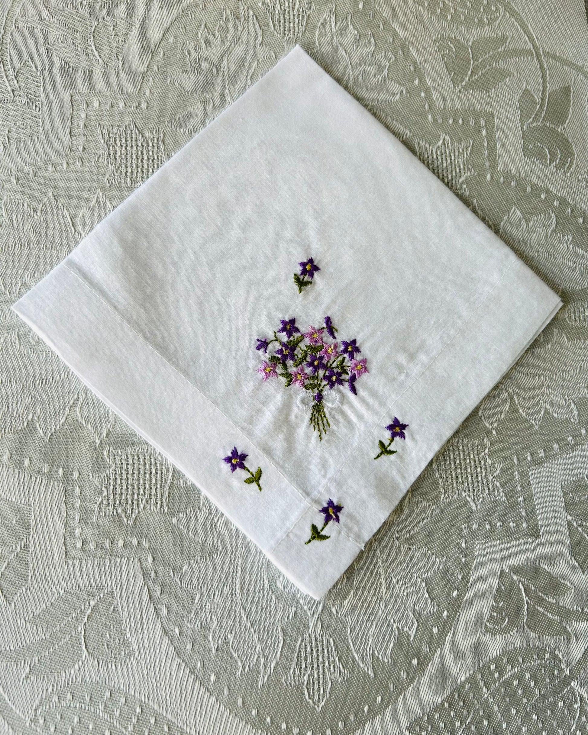 Handkerchief Ladies - Embroidered Wide Hems Violets
