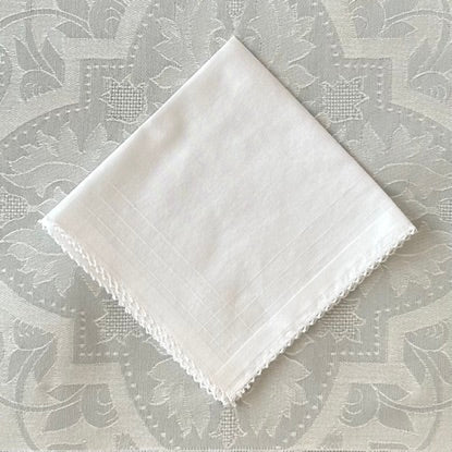 Handkerchief Ladies - Cotton White Satin Borders with Picot Edge