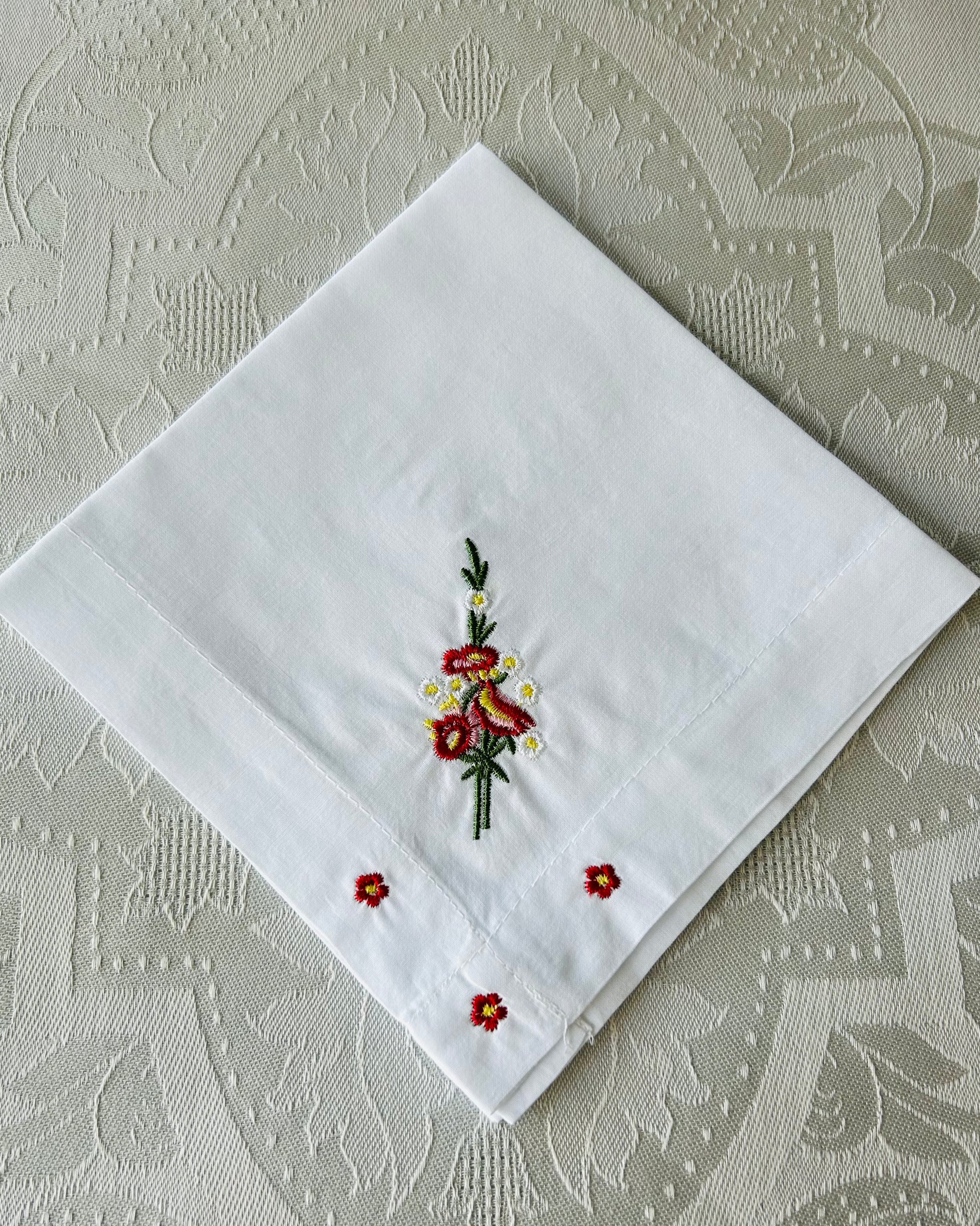 Handkerchief Ladies - Embroidered Wide Hem Red Anemone