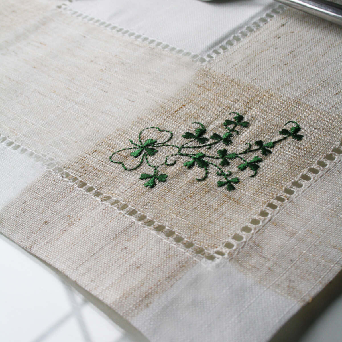 This stunning embroidered Kinsale Shamrock range features a variety of elegantly designed table textiles to sure bring an element of relaxation and sophistication to your home. A great natural table décor range that is sure to please any Ireland or springtime lovers! A simplistic and practical addition is our embroidered table runner measuring approx 14"x54". With a mix of both linen and polyester blend complimented by gorgeous green embroidery.