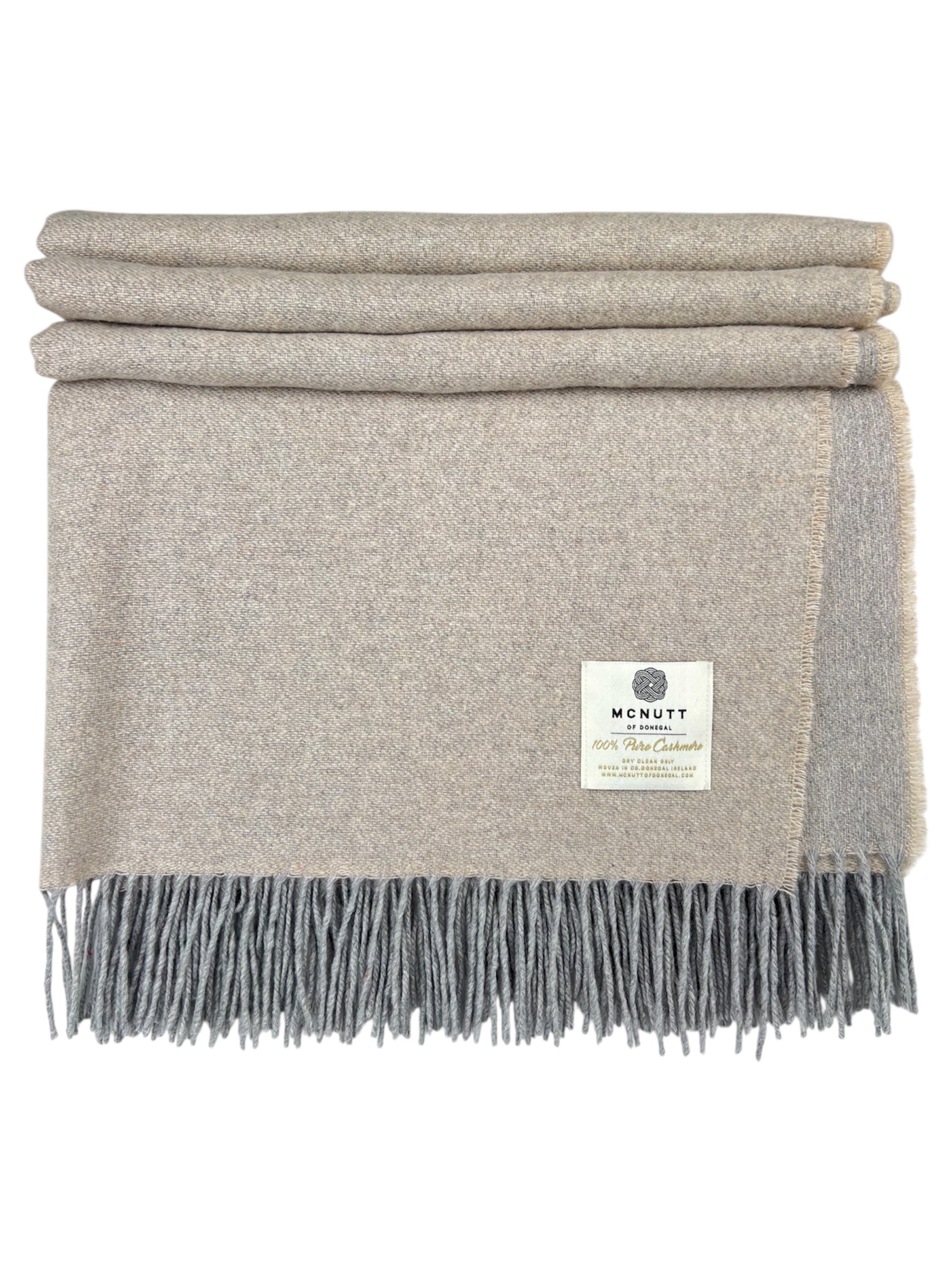 McNutt 100% Cashmere Reversible Throw "Natural & Dove"