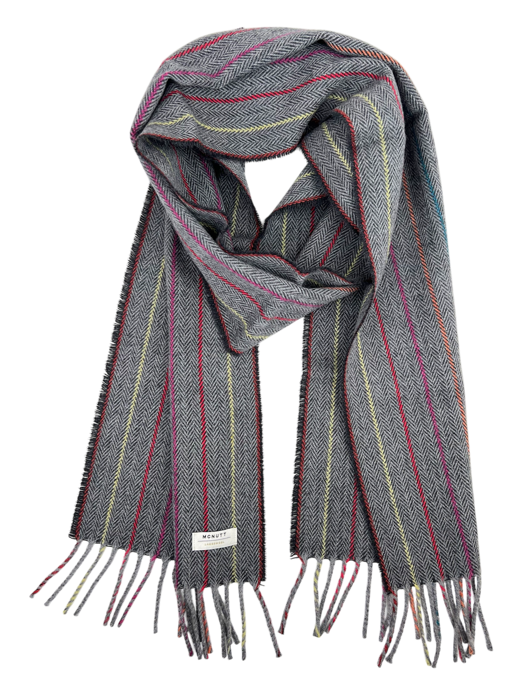 McNutt Lambswool Scarf - Charcoal Rainbow Herringbone