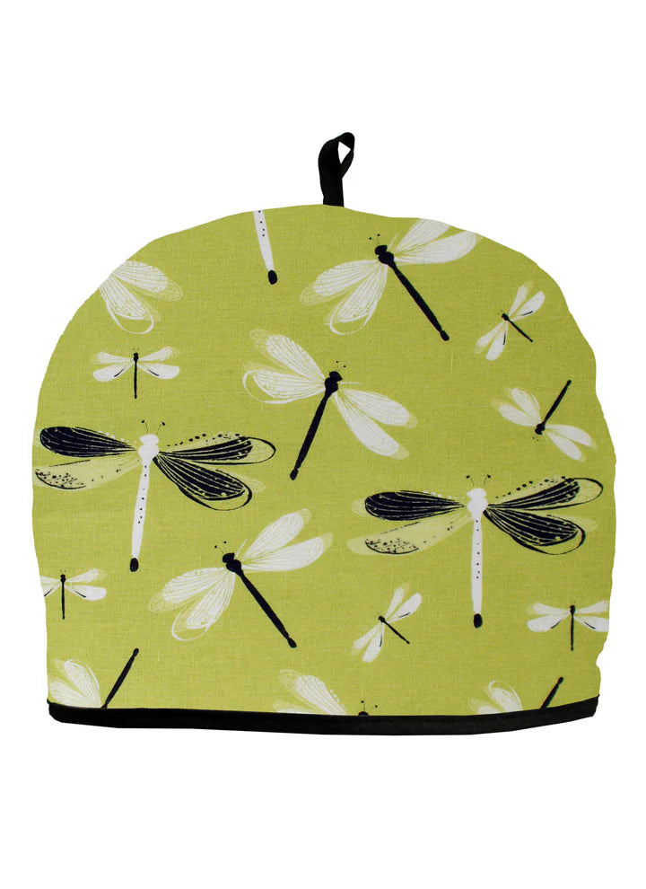 Rain Goose Linen Tea Cozy "Dragonfly" Green