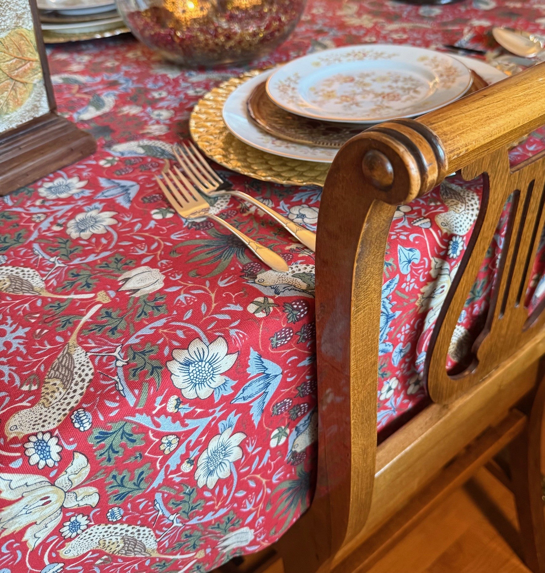 William Morris Strawberry Thief Red Tablecloth